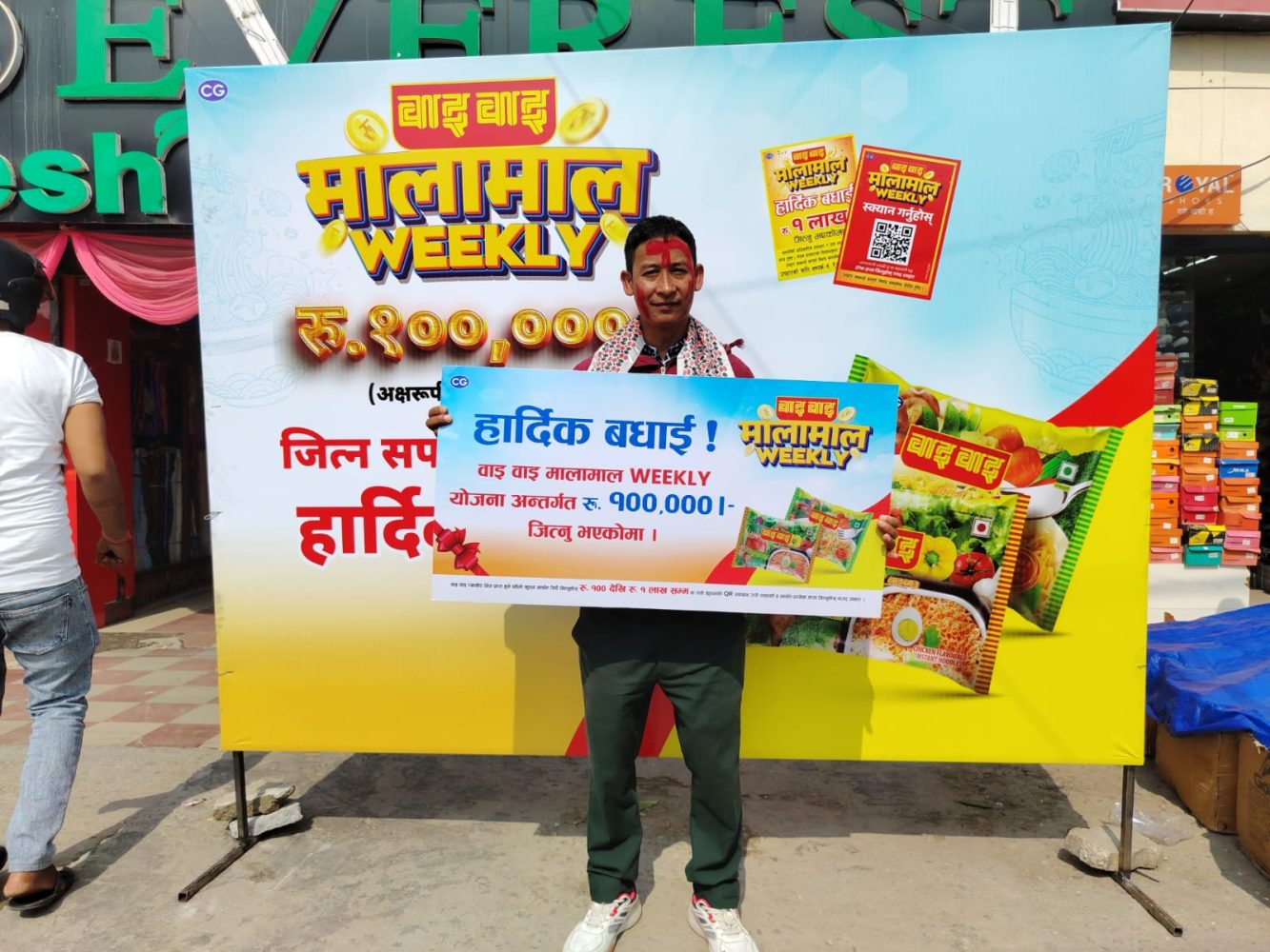 गाईघाट २१ माघ । वाई वाई ” मालामाल ” साप्ताहिक योजना अन्तरगत झापाको बिर्तामोड नगरपालिका १ का बेलबहादुर राईले नगद १ लाख रुपैया पाएका छन् । नेपालको अग्रणी नुडल्स ब्रान्ड वाई वाईले हरेक हप्ता वाई वाई मालामाल बिक्ली उपभोक्ता उपहार योजना सन्चालन गर्दै आएको छ ।कोशी तथ..