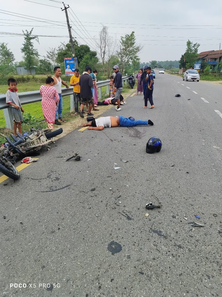 गाईघाट ४ बैशाख । मोटरसाइकलको ठक्करबाट शुक्रबार दिउसो बेलका नगरपालिका १ आम्बासी कालिखोला सडकमा साईकल यात्रीको मृत्यु भएको छ । सप्तरीको फत्तेपुर देखि शनीबारे तर्फ आउदै गरेको प्र .१-०५-००१ प ५७३५ नम्बरको मोटरसाइकलको ठक्करबाट सोही दिशा तर्फ जादै गरेको साईकल यात्रीलाई ठक्कर दिदा..