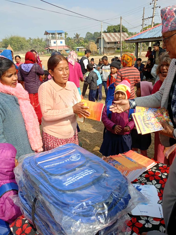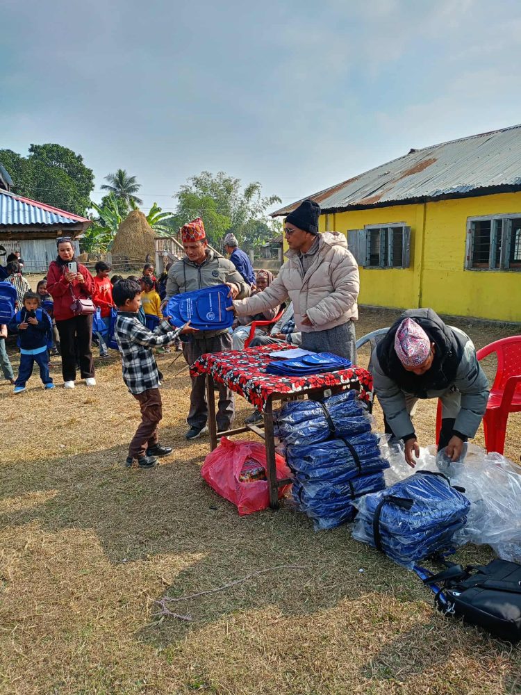 फाउन्डेसनका संरक्षक एबम राप्रपाका सहकोषाध्यक्ष शोभित उप्रेतीले उपलब्ध गराएको झोला विशेष कार्यक्रम गरेर राप्रपा केन्द्रिय संगठन बिभाग सदस्य गोपि ढकाल र प्रदेश क्षेत्रीय अध्यक्ष गङगा खड्काले वितरण गरेका हुन् ।
